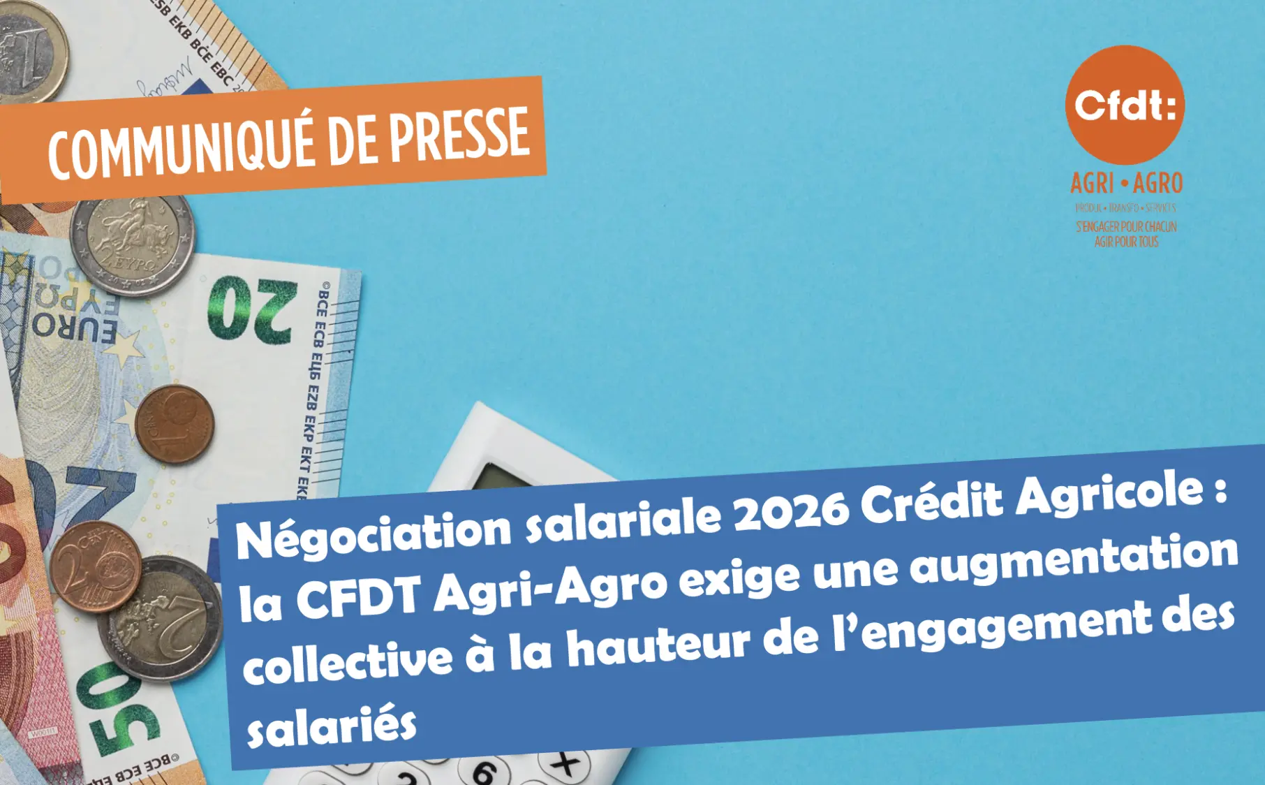 Alors que les Caisses régionales du Crédit Agricole affichent une activité soutenue au premier semestre 2025, la CFDT Agri-Agro exige que l’ouverture de la négociation salariale 2026 se traduise par une augmentation collective à la hauteur des attentes des salariés du Groupe.